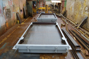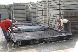 Армирование. Армирование железобетонных изделий является обязательным этапом при производстве дорожных плит. Для этого используются стальные прутья или сетки, которые укладываются в форму перед заливкой бетона. Армирование значительно повышает прочность и устойчивость плит к механическим нагрузкам, что особенно важно в условиях интенсивного движения транспорта. В зависимости от требуемых характеристик изделия, армирование может быть однослойным или многослойным.